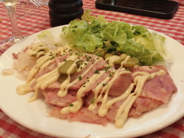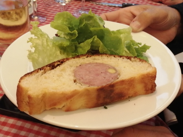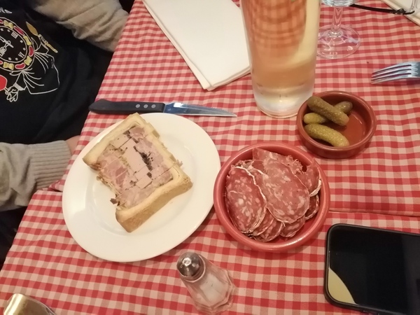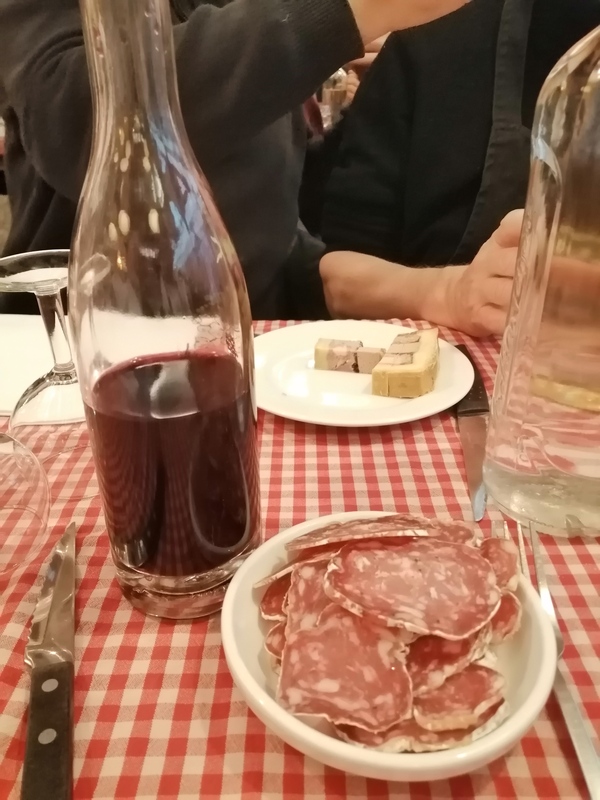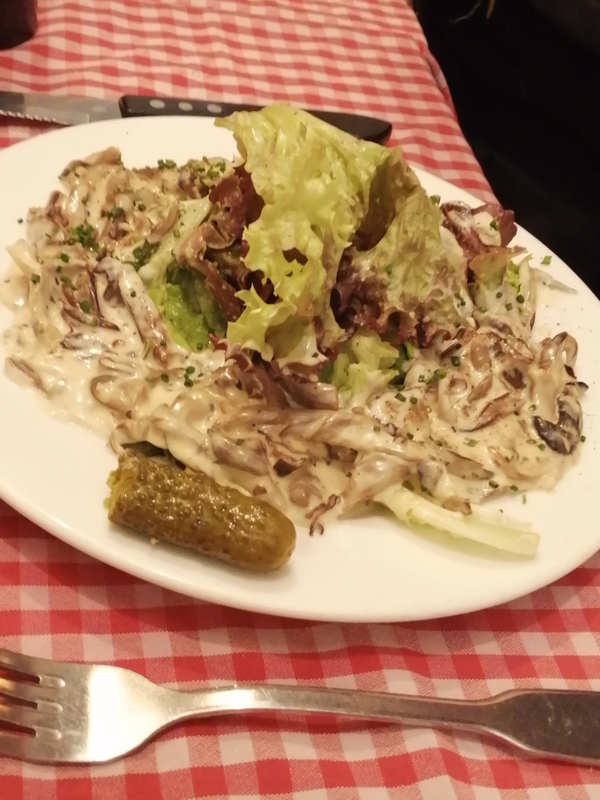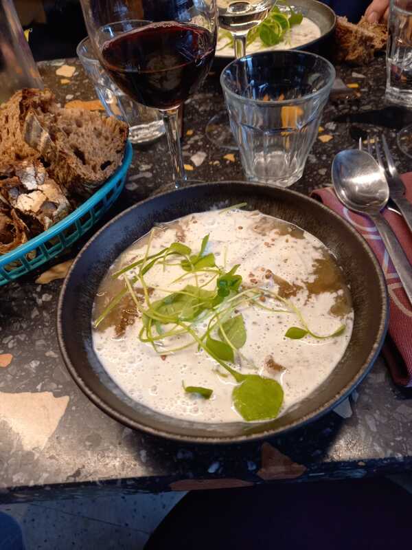 pour les entrées : salade de museau, velouté de choux fleurs, os à moelle, saucisson brioché