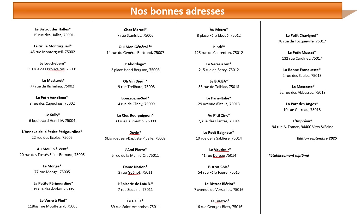 "La confrérie des francs-mâchons de Lyon vous présente ses diplômés de Paris, des authentiques mâchons, plus de 30 restaurants sur tout Paris"