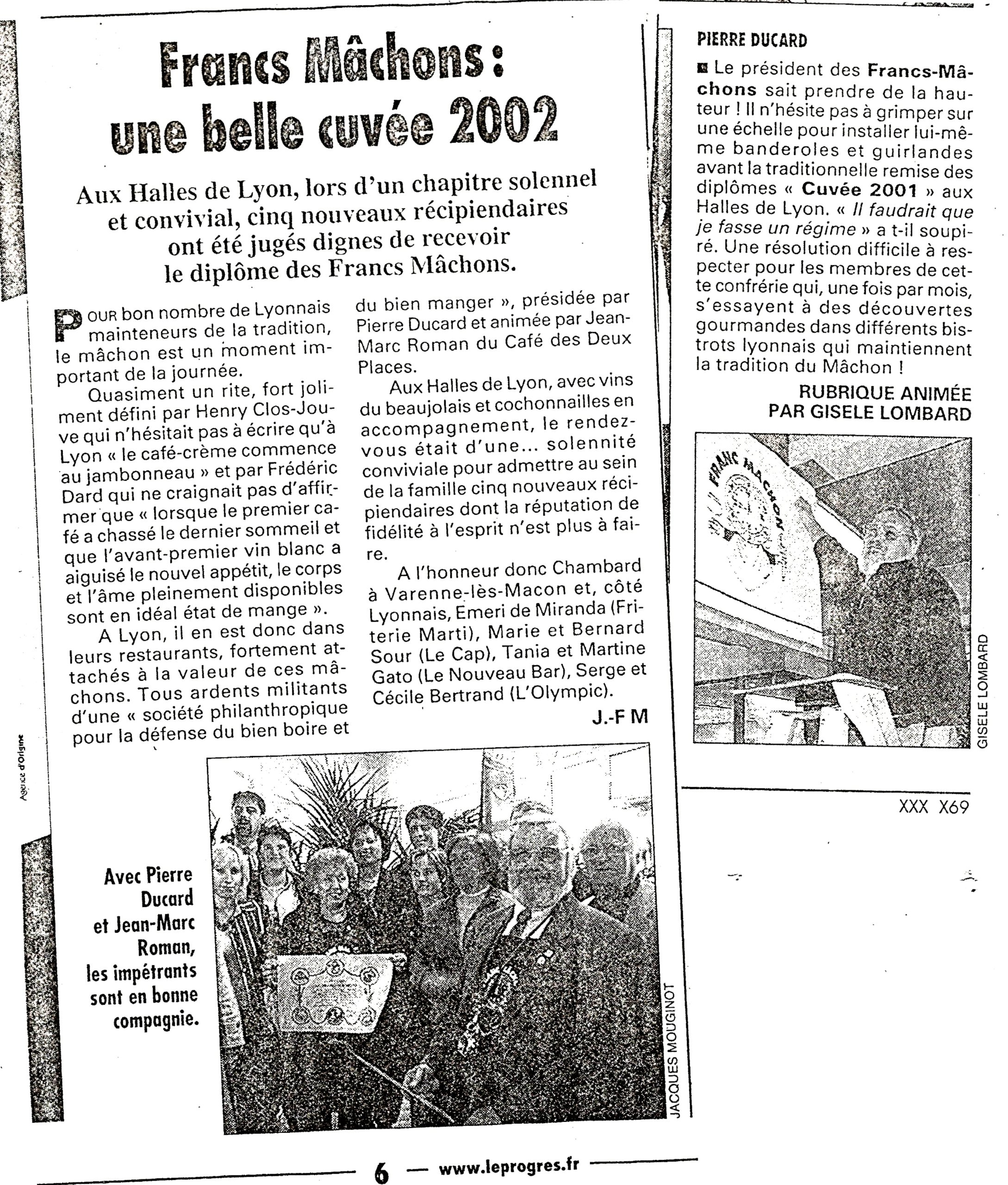 Le Progrès : Intronisations Confrérie Coq en Pâte